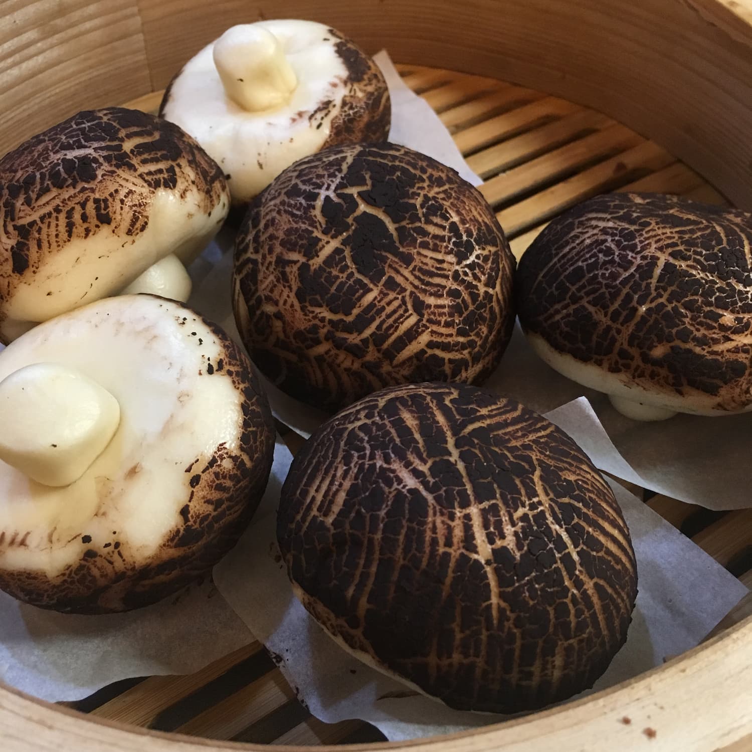 椎茸の形のかわいらしい中華まん。きのこ入りの肉餡を包んでしあげます。