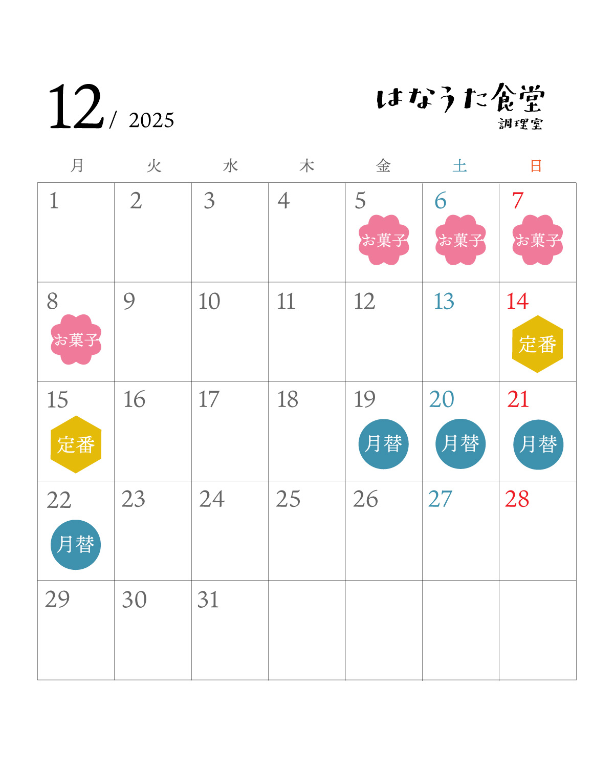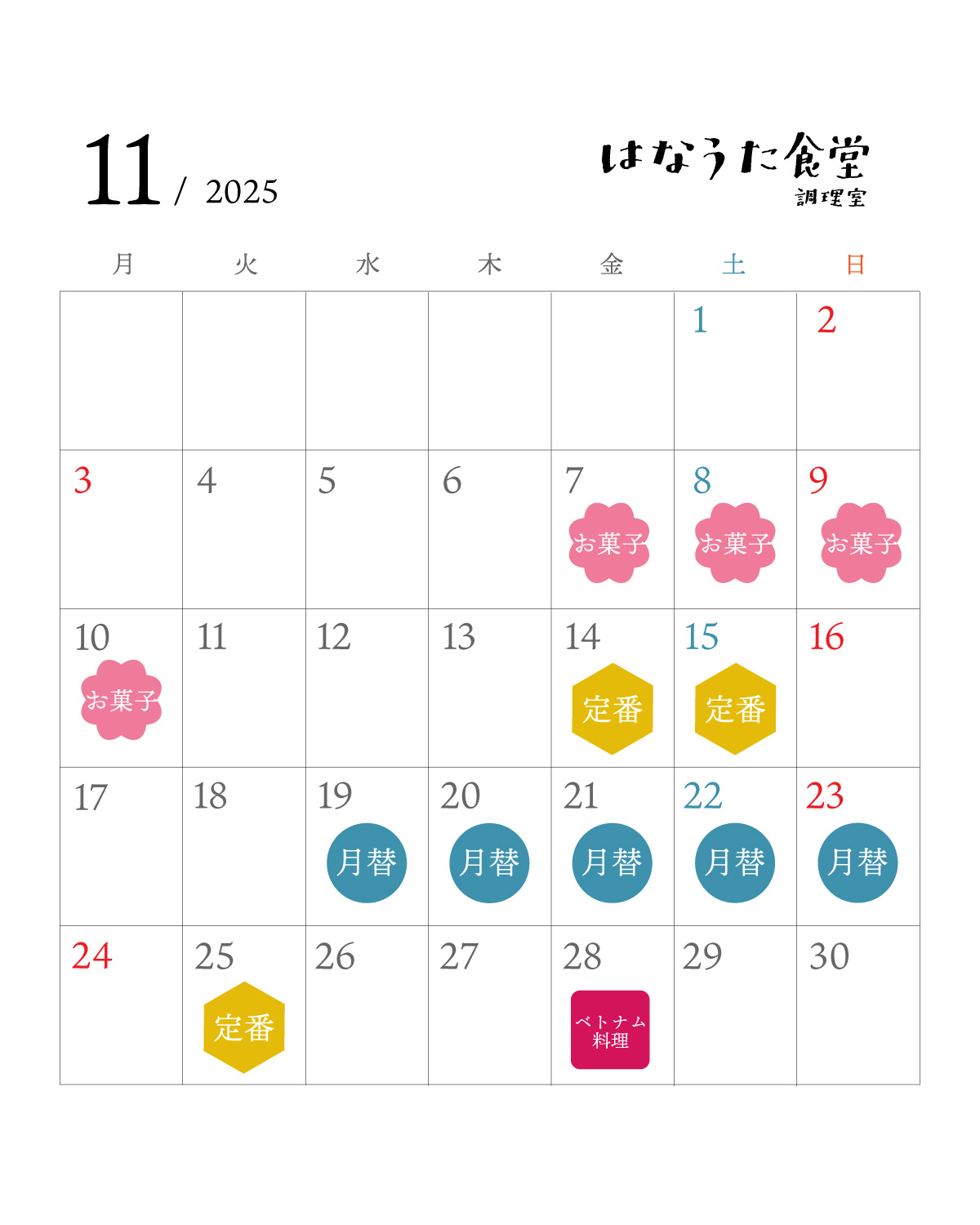 - 新作やその季節ならではの味、ちょっとマニアックな一品など、はなうたおすすめ(あるいは気まぐれ)メニューで開講する月替レッスンです。