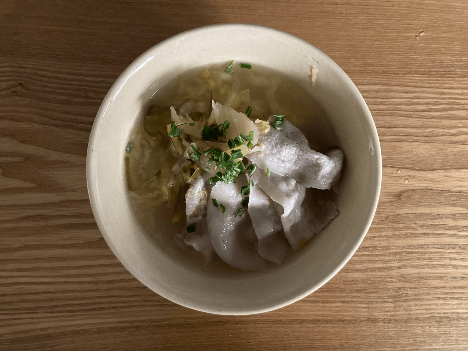 台湾人気グルメの一つ、「酸菜白肉鍋」別名酸っぱい白菜鍋。