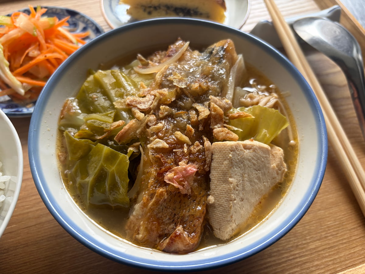 - 砂鍋魚頭/揚げた魚と白菜(またはキャベツ)の沙茶醬煮込み